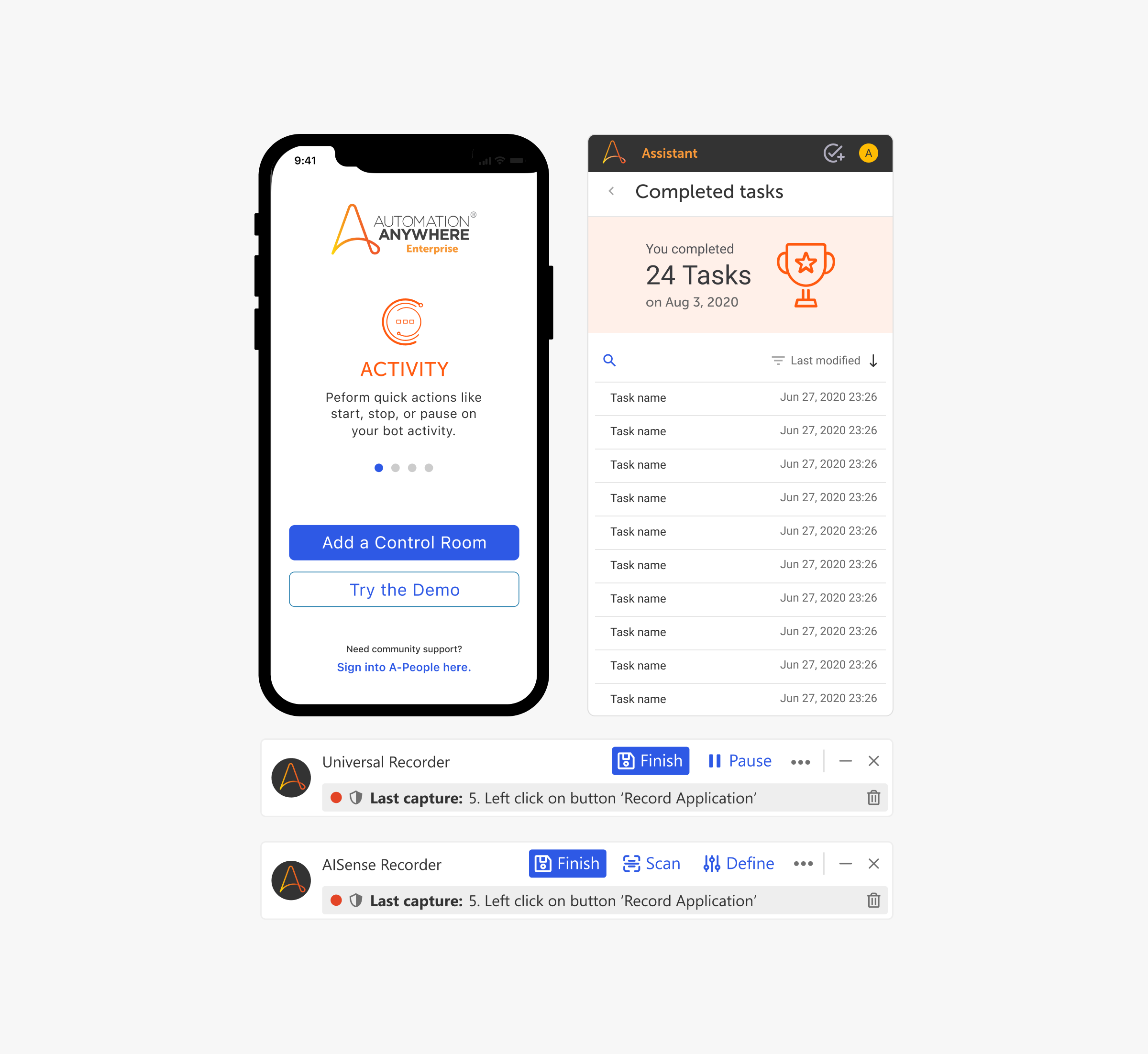 Automation Anywhere’s revamped design system for browser apps and Windows desktop widgets.