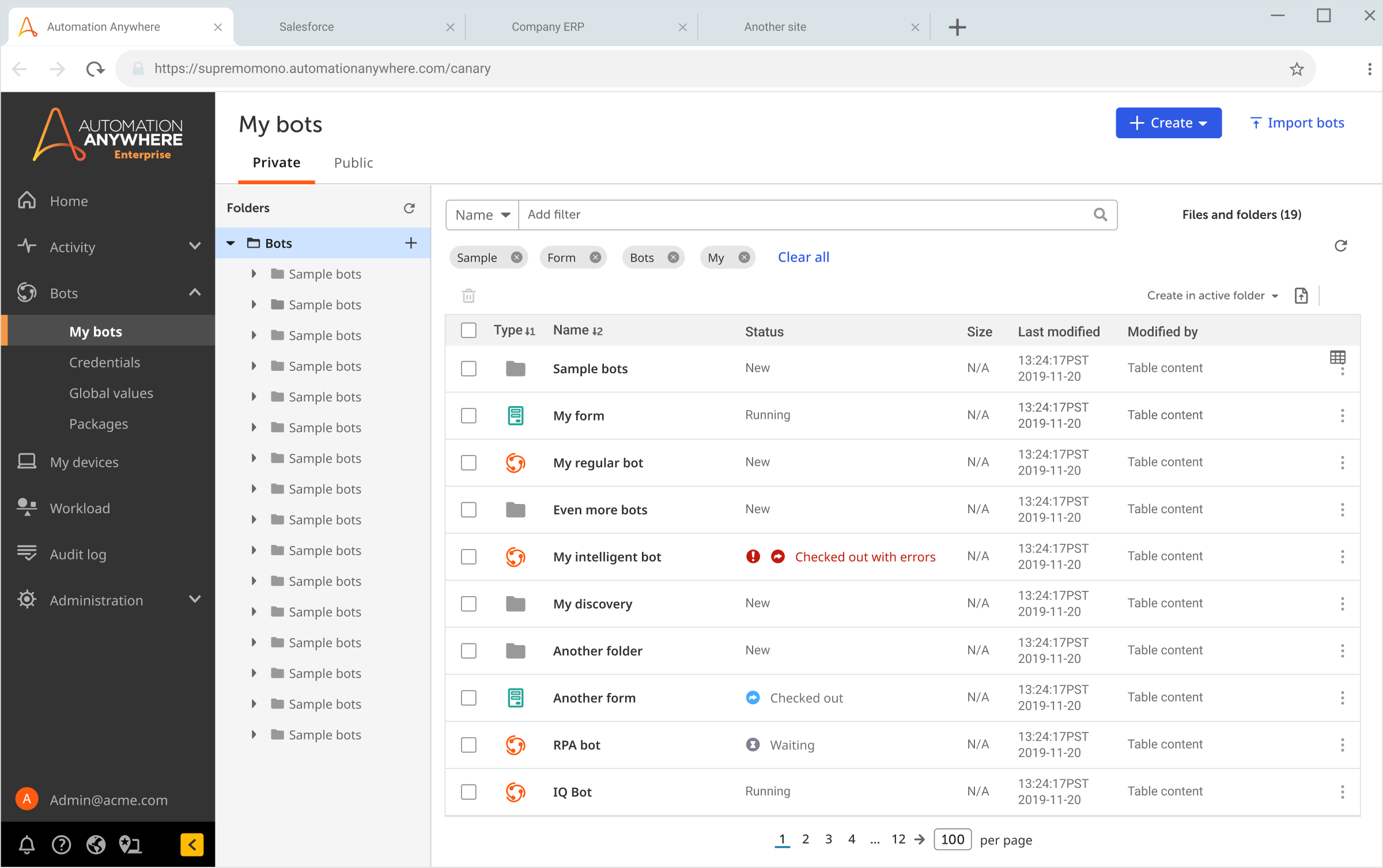 Automation Anywhere offers Robotic Process Automation solutions to a broad range of enterprise companies. In 2019, I was hired to lead their visual language and design system efforts.