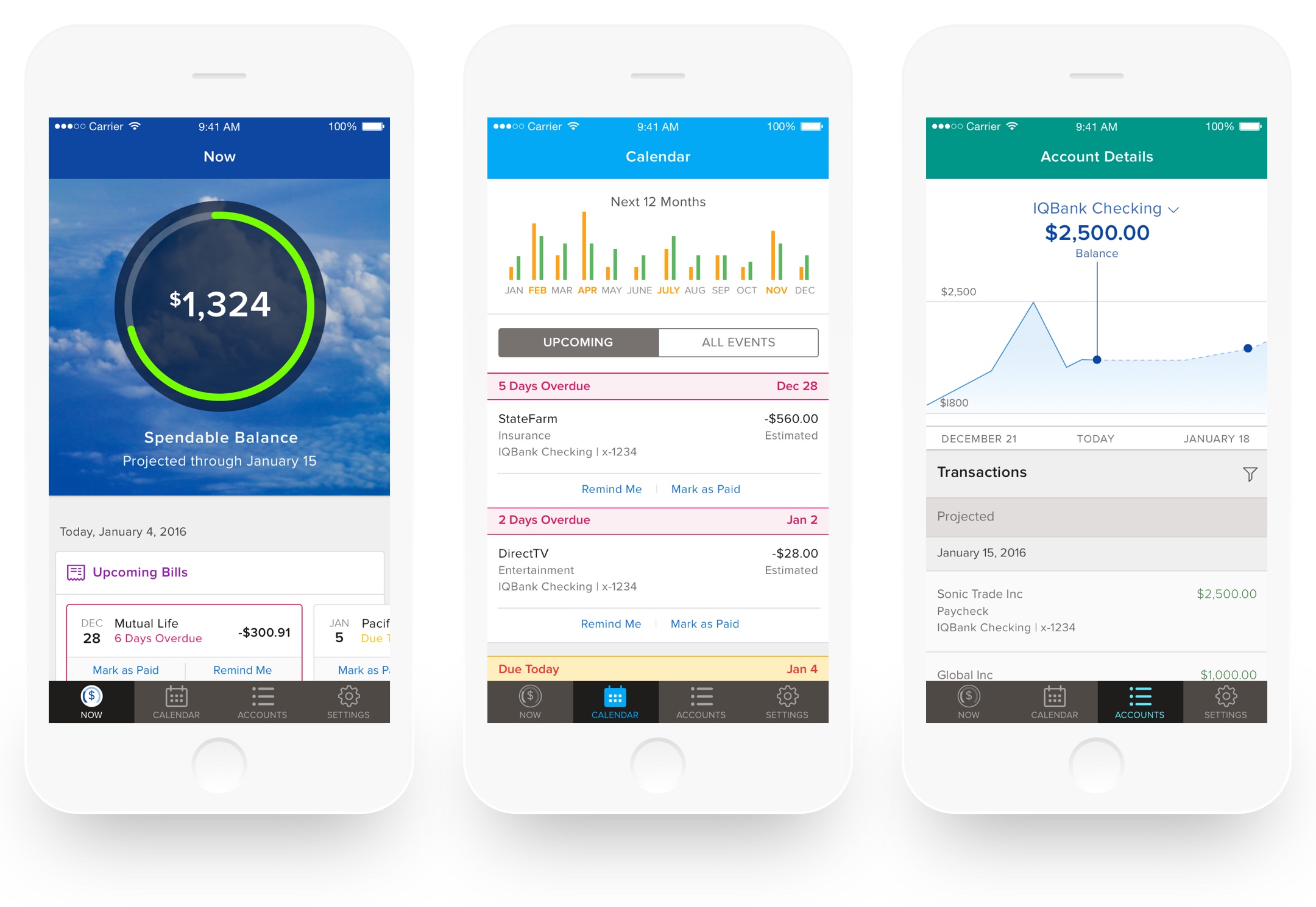 A personalized view was then created based on a customer's financial situation. A screen with a simple balance and news feed was the primary screen as most users just wanted a quick snapshot. Additional graphs and calendars were added for those who wanted to go more in-depth.